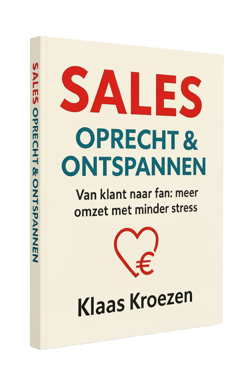 Be the first to receive Klaas Kroezen's book "Sales, Oprecht en Ontspannen" (Sales, Sincere and Relaxed). The perfect Christmas gift for you or your entire team.Â